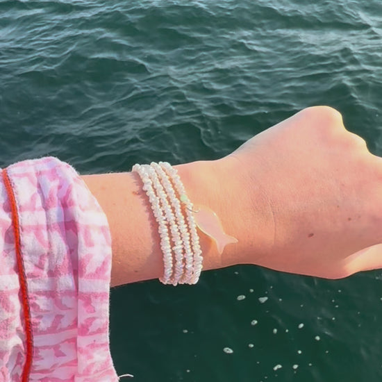 - Freshwater Keishi Pearls, Enamel fish charm.